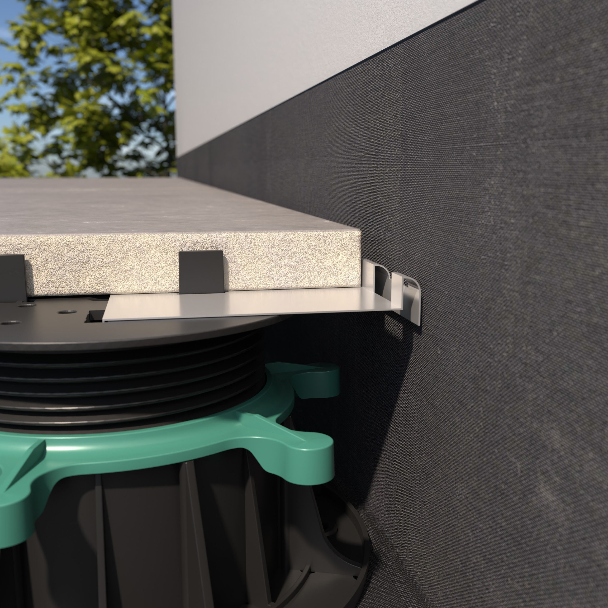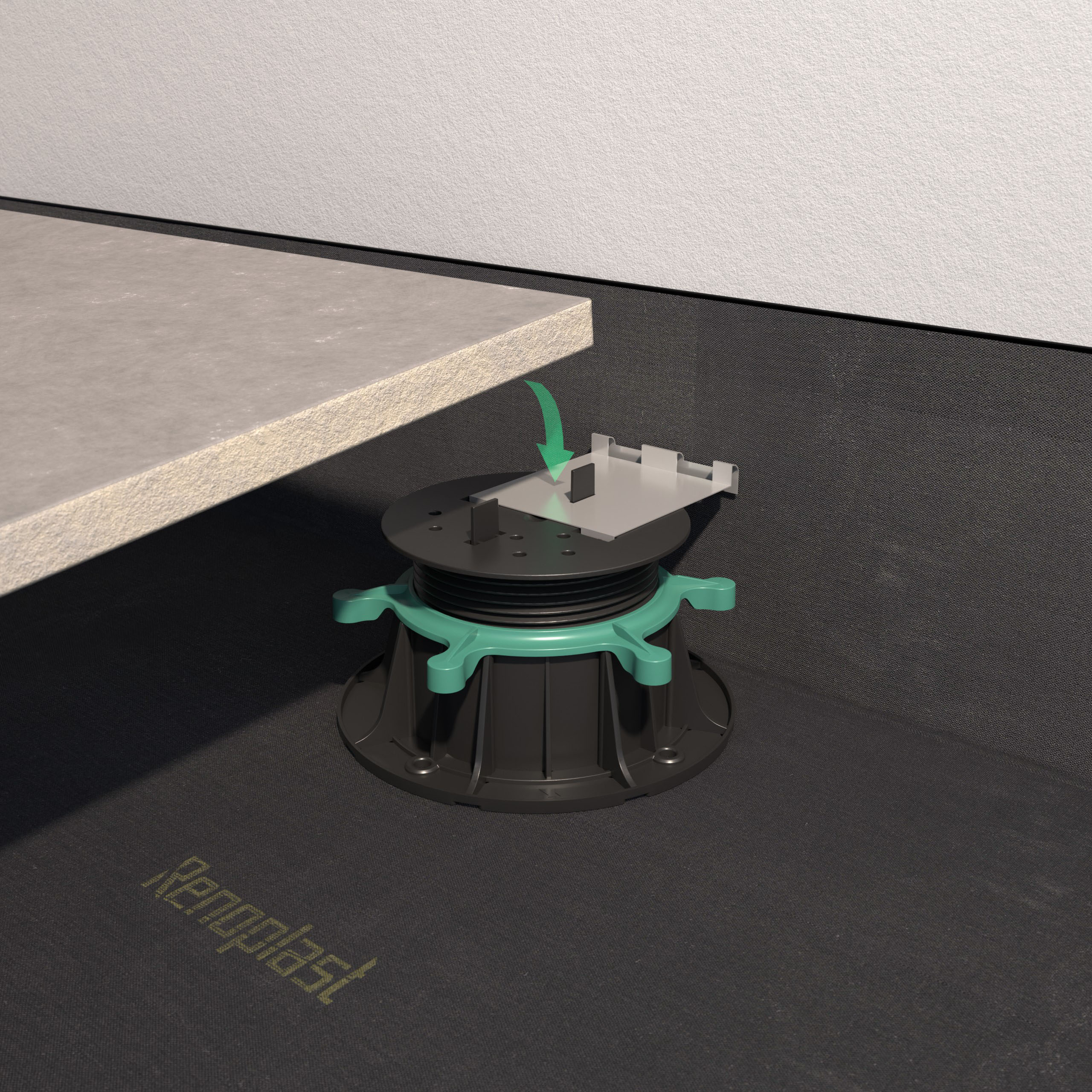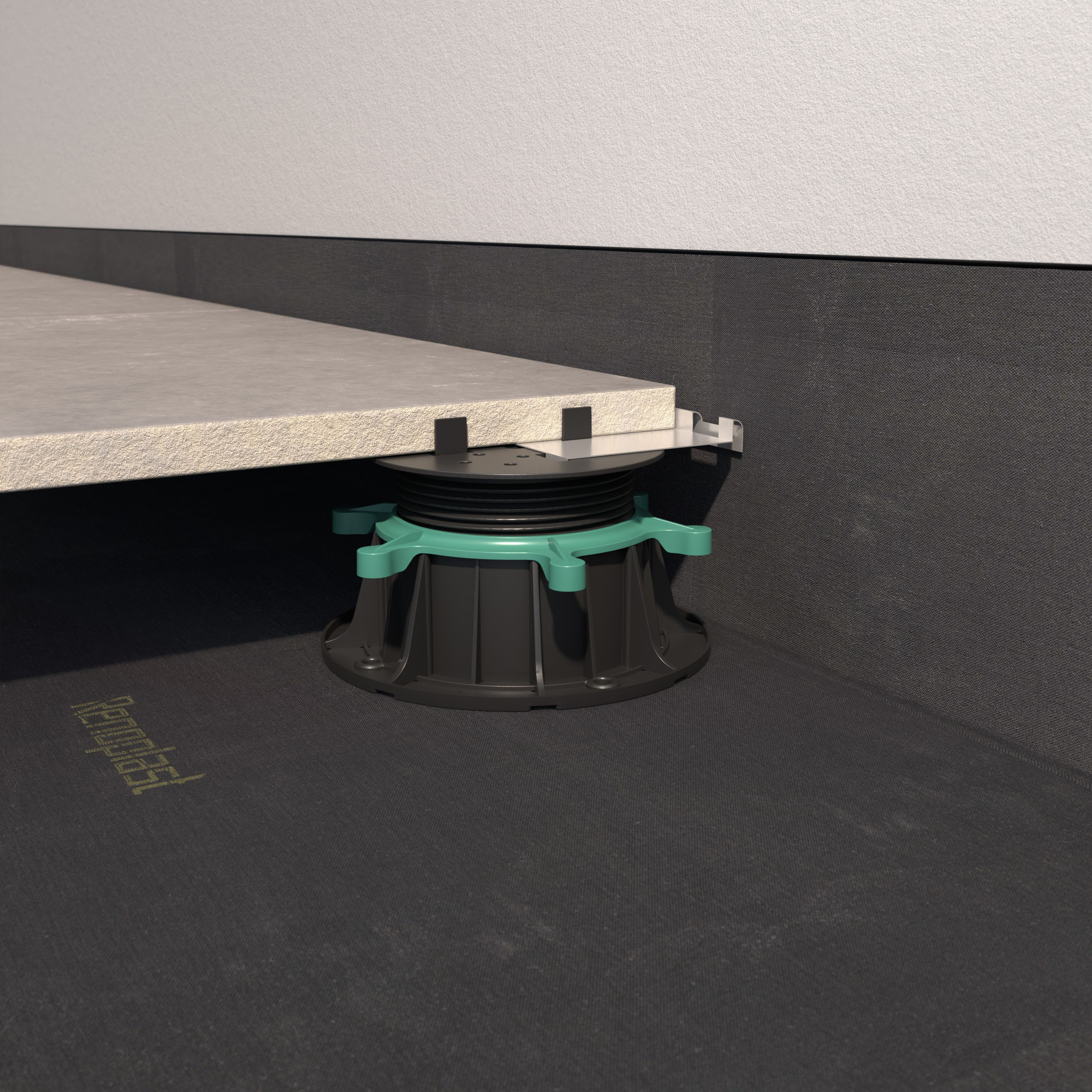Klips dystansujący RENOPAD PRO jest elementem stabilizującym posadzkę wzdłuż ściany budynku.