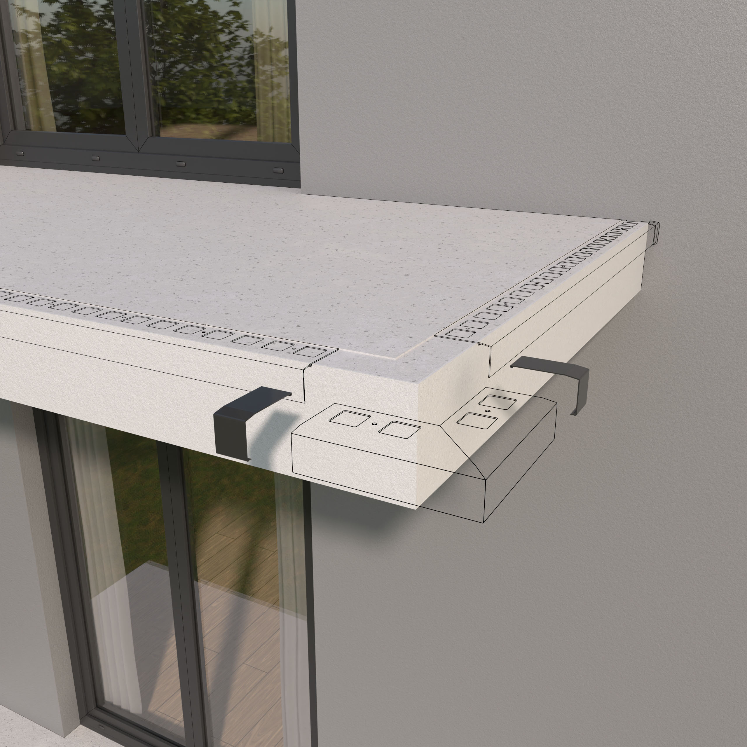 Podczas montażu profili na balkonach i tarasach stosuje się przerwę technologiczną o szerokości 2 mm, przeznaczoną do niwelowania naprężeń. Przerwa ta występuje zarówno pomiędzy poszczególnymi profilami, jak i pomiędzy narożnikiem a profilem okapowym. Łączniki służą do estetycznego zamaskowania powstałej szczeliny.