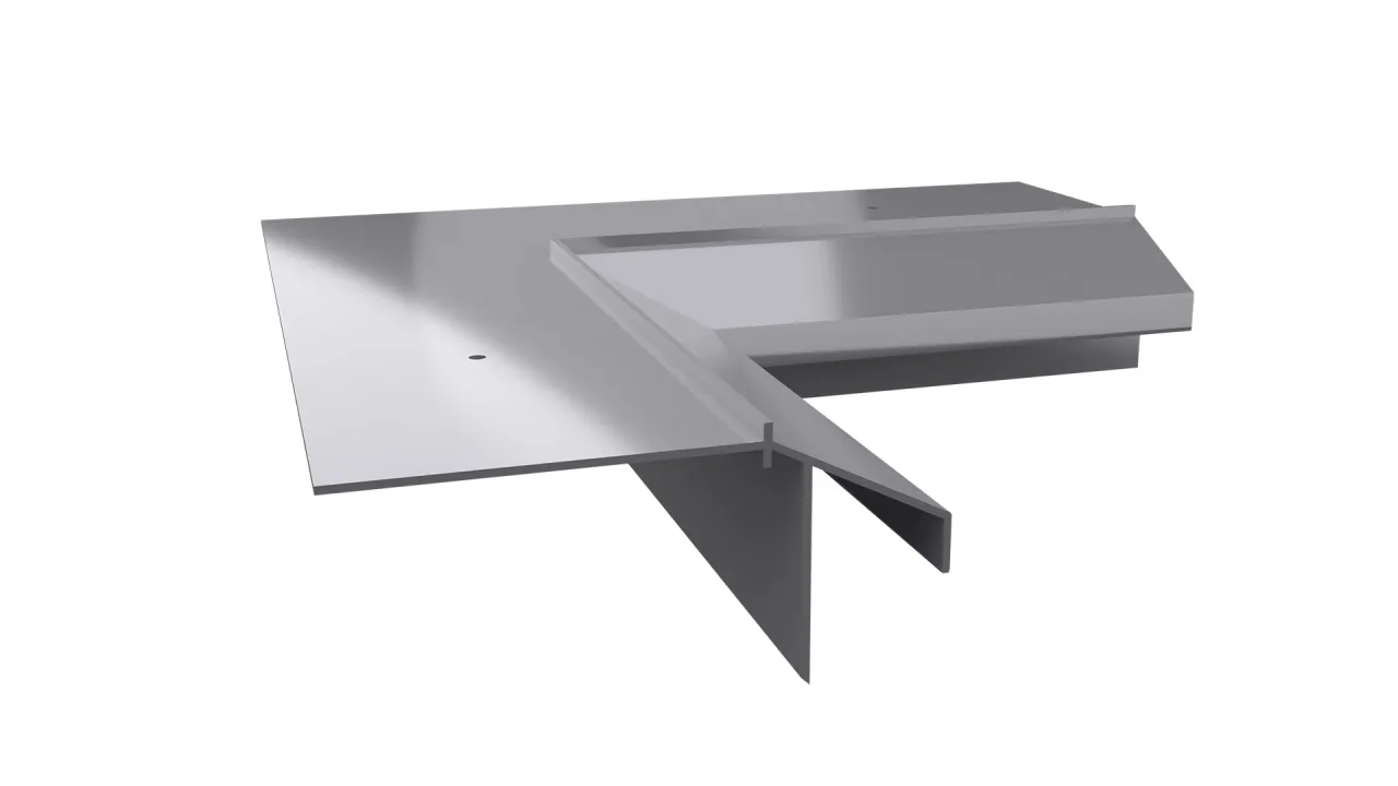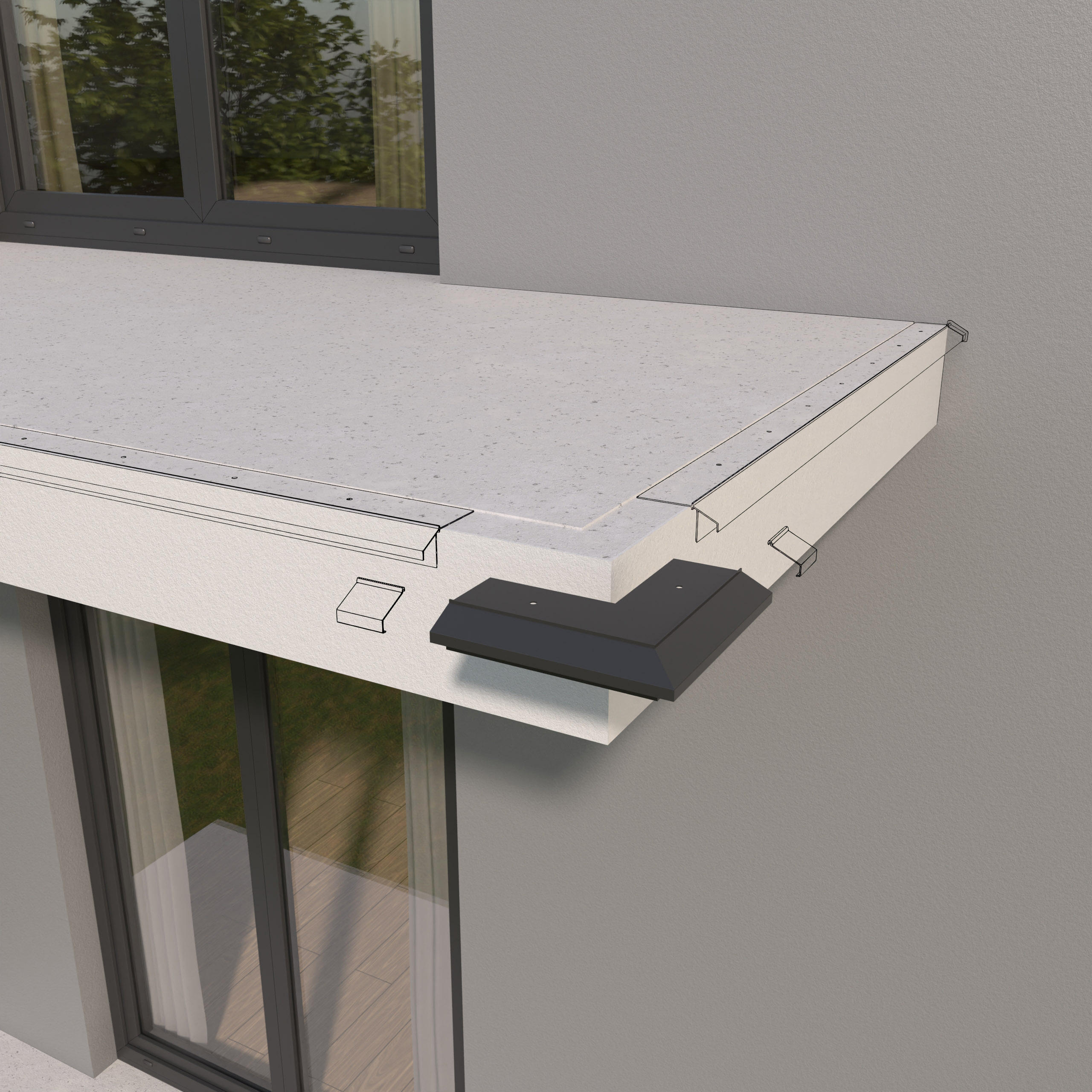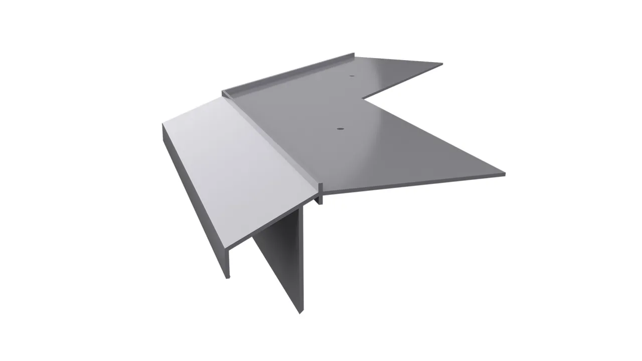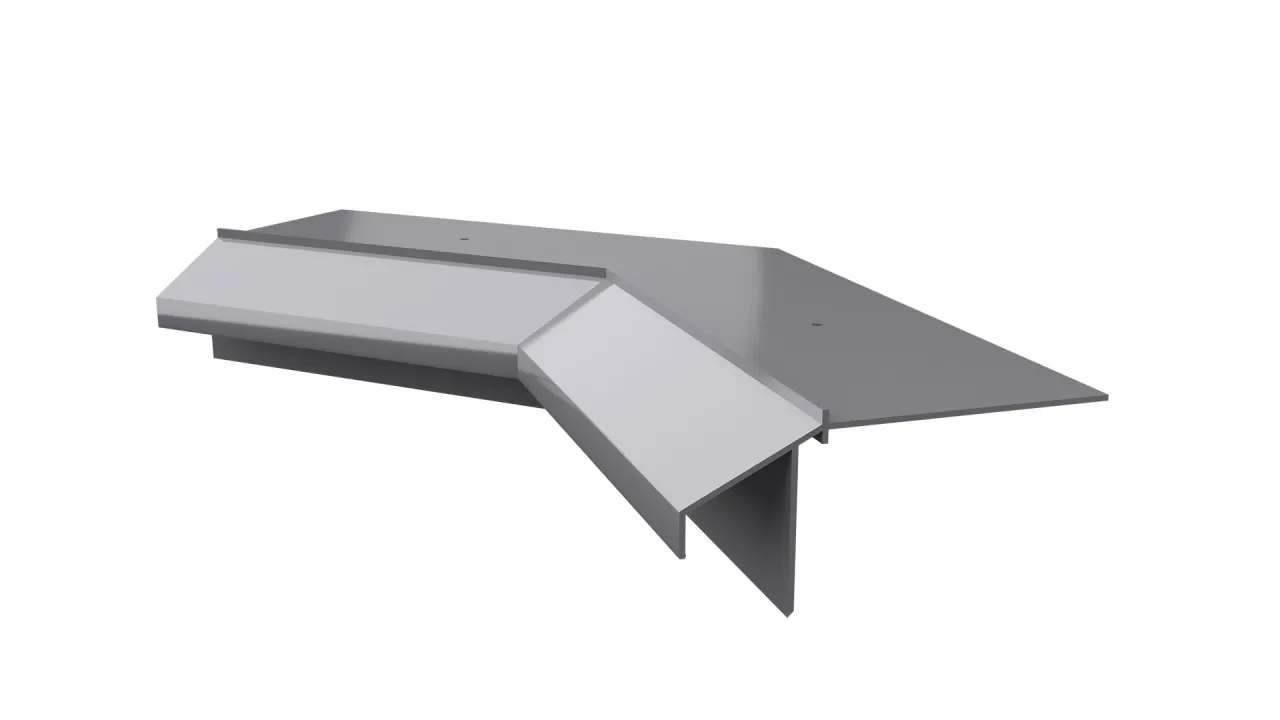 Narożnik K10R stanowi element systemowego wykonania okapu z wykorzystaniem profili K10R i przeznaczony jest do wykończenia wewnętrznych naroży tarasu oraz balkonu.