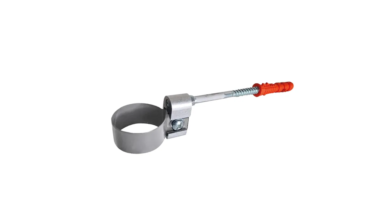 Obejma do aluminiowej rury spustowej R50, umożliwiająca jej montaż do ściany budynku.