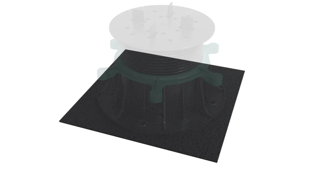 Podkładka wygłuszająca wykonana z gumy, montowana pod wspornikami, ogranicza hałas powstający podczas użytkowania tarasu i balkonu oraz równomiernie rozkłada naprężenia pomiędzy wspornikiem a podłożem.