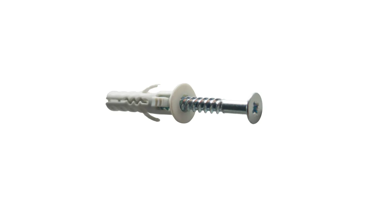 Kołek z płaskim łbem do montażu profili i narożników 8 × 40 mm (wkręt + koszulka) przeznaczony jest do mechanicznego mocowania profili okapowych do podkładu cementowego.